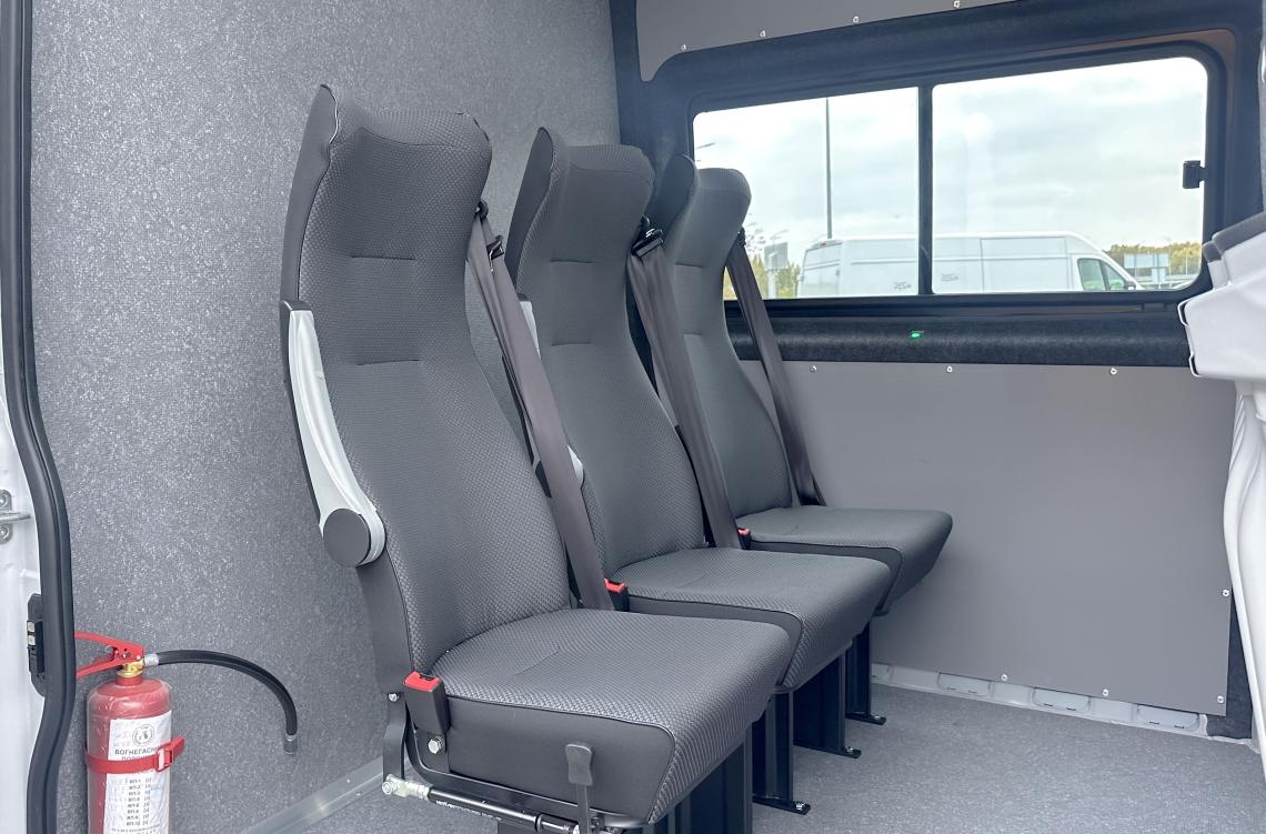 - Встановлення трьох пасажирських сидінь з три-точковими ременями безпеки